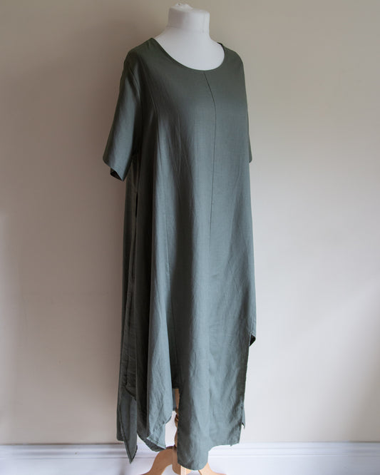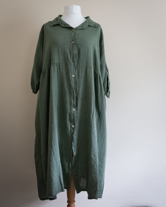 Hax Lux Lori linen/cotton blend button down dress in khaki