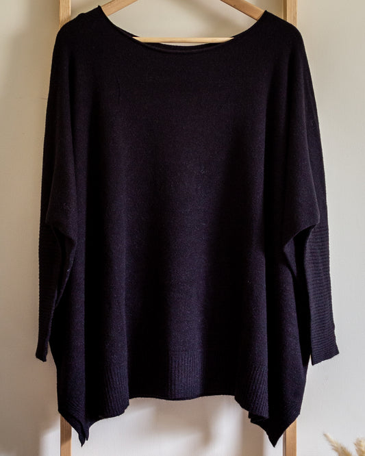 Hax Lux ultra soft boat neck fine knit jumper in black
