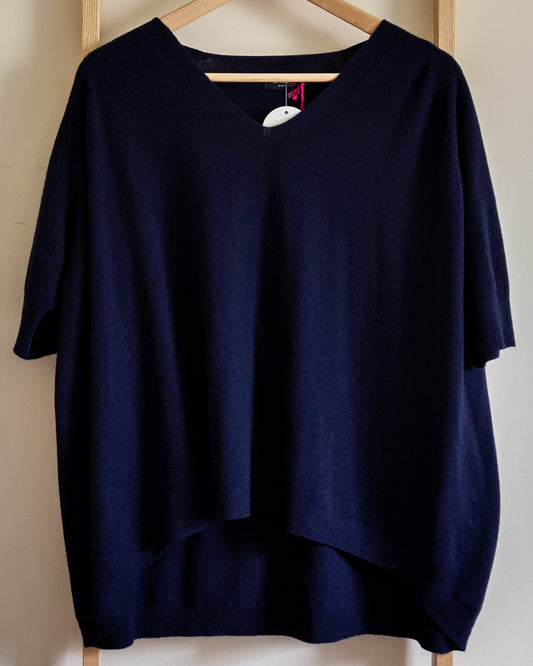 Hax Lux ultra soft v neck fine knit top in navy