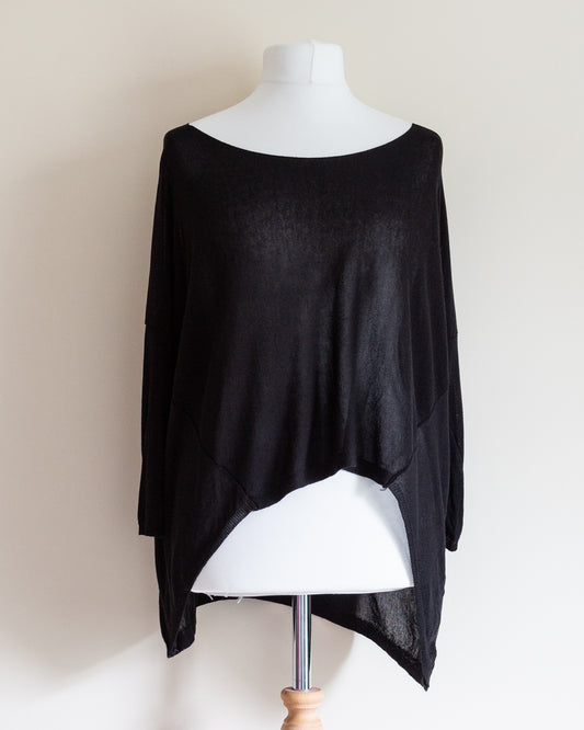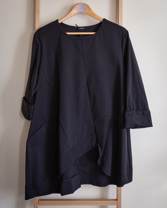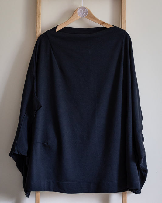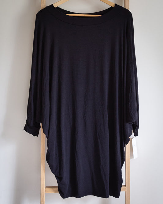 Stevie batwing sleeve long line jersey tee in black