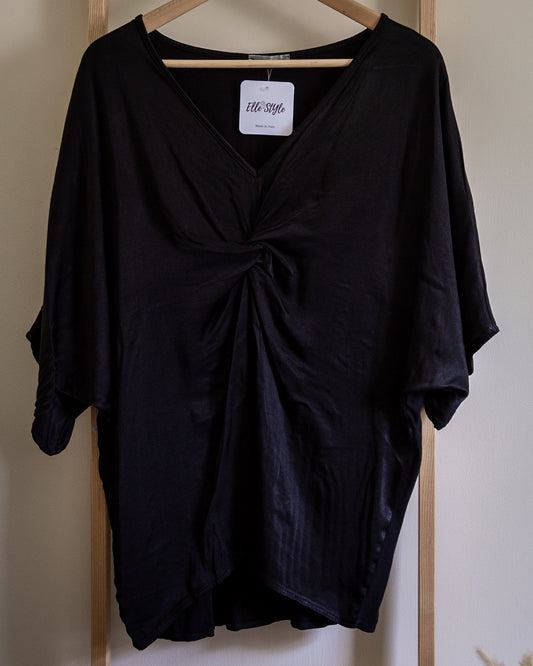 Knot front blouse in black