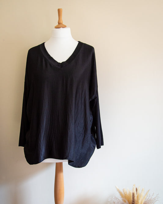 Sold outHax Lux silk front top in black